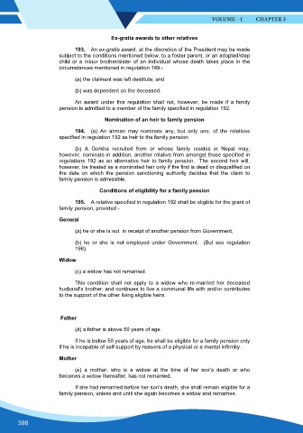specified in regulation 192 as heir to the family pension.